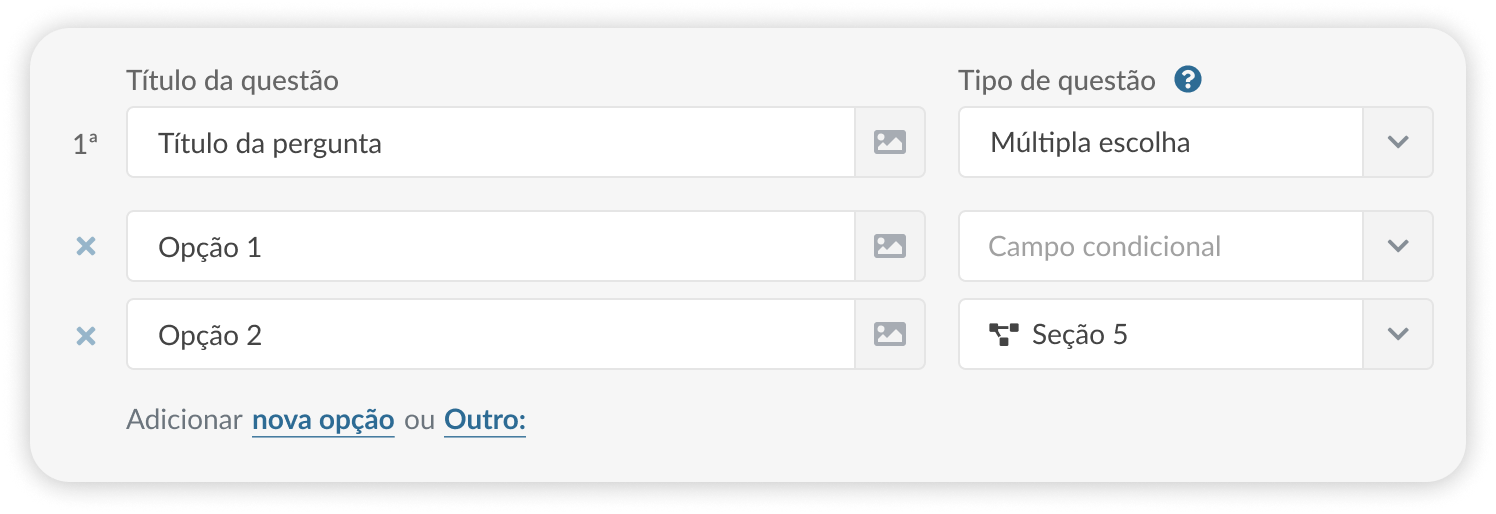 - Questões de Múltipla Escolha ou Escala: As condicionais são limitadas a esses tipos de questões.